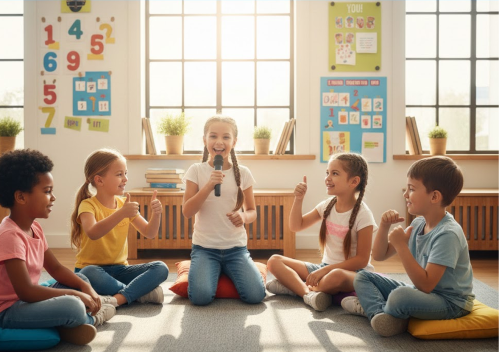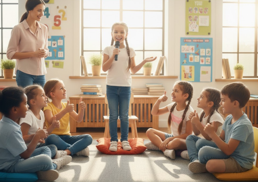 We help children develop public speaking skills, leadership qualities, and strong self-confidence from an early age.